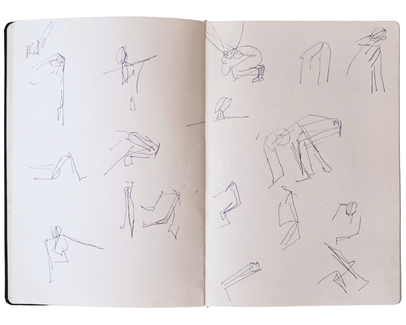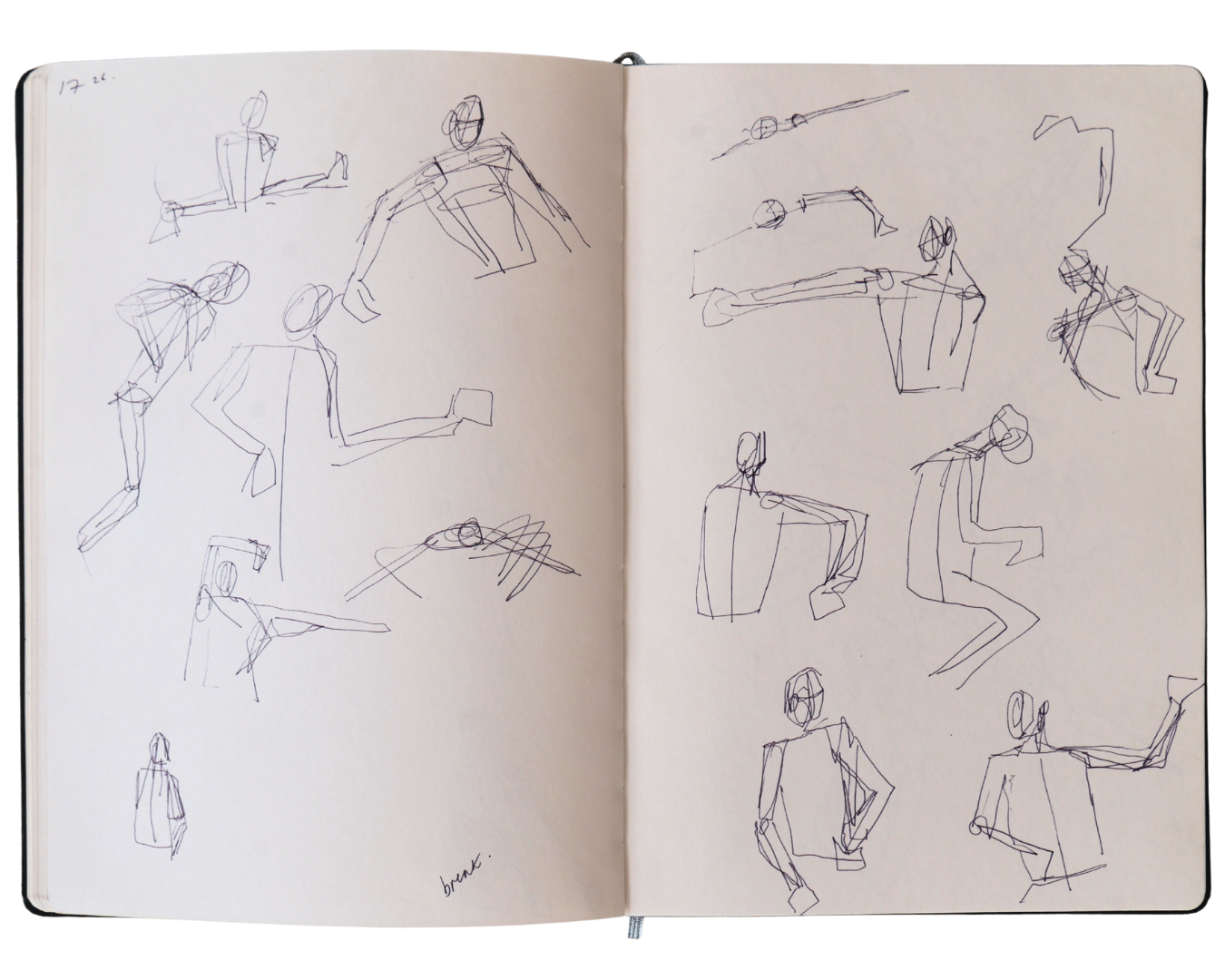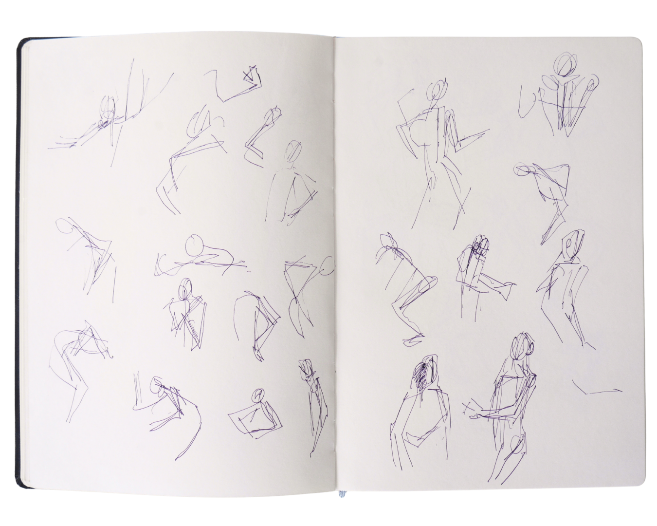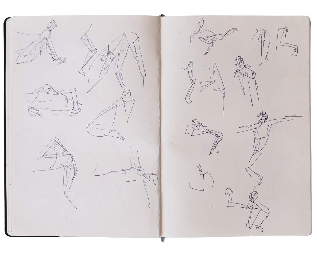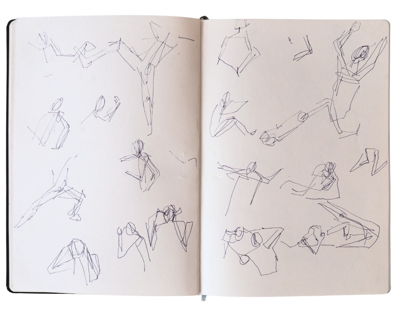 Visiting more places across the country, I drew inspiration from the landscape, culture, food, and customs. Exploring further afield from Bangkok ended up being just as fulfilling as the research project for me to get a better idea of how these elements of dance, theatre and ceremony are visible throughout Thailand. I enjoyed observing traditional Thai massage, something usually only conducted in private spaces, being a communal experience along the coast and in shared rooms. You can see glimpses of my thoughts through my travel sketchbook below.