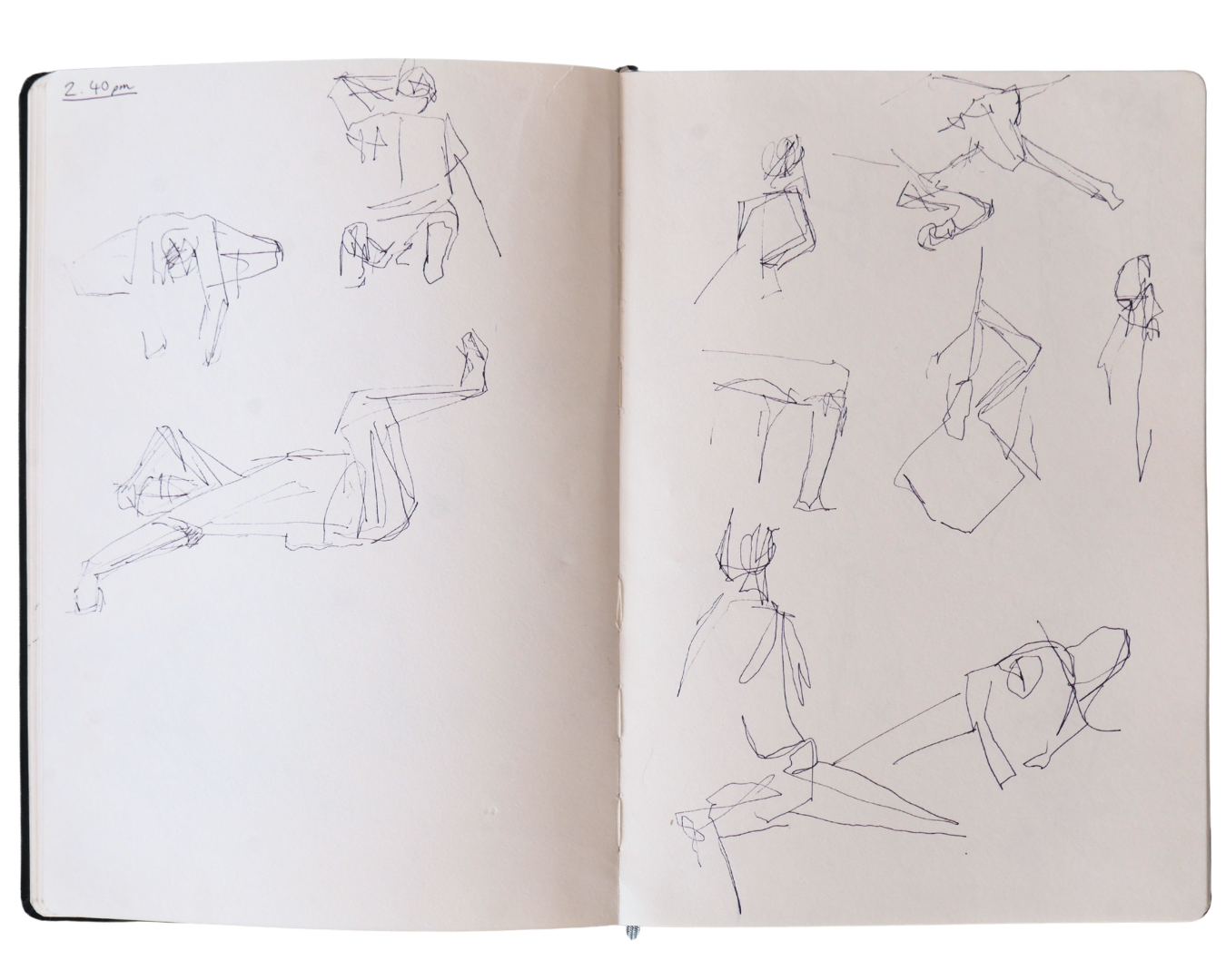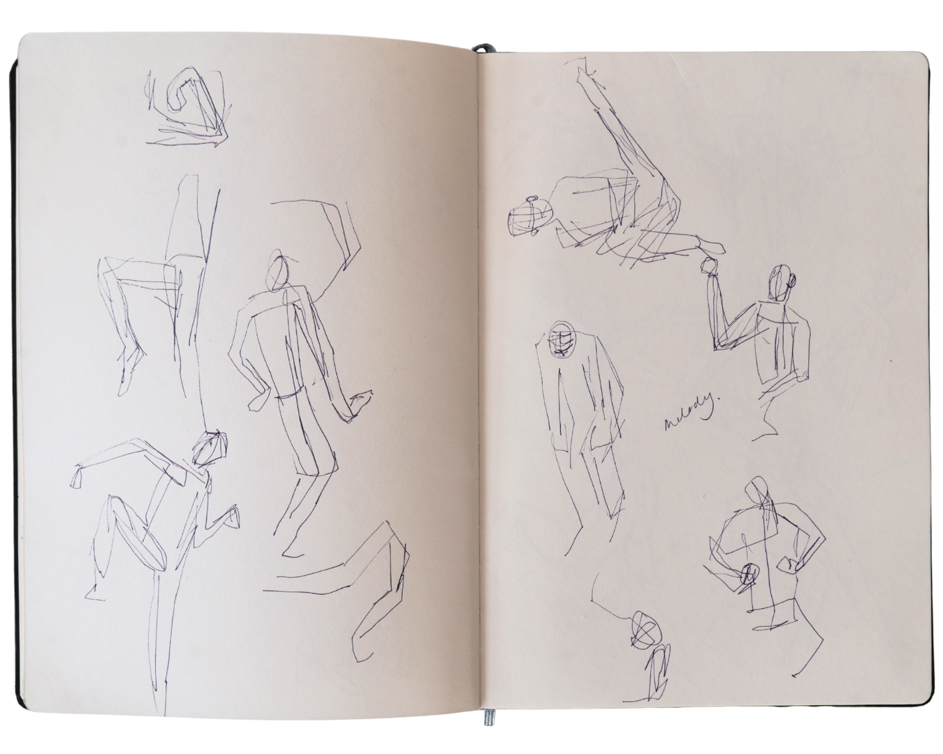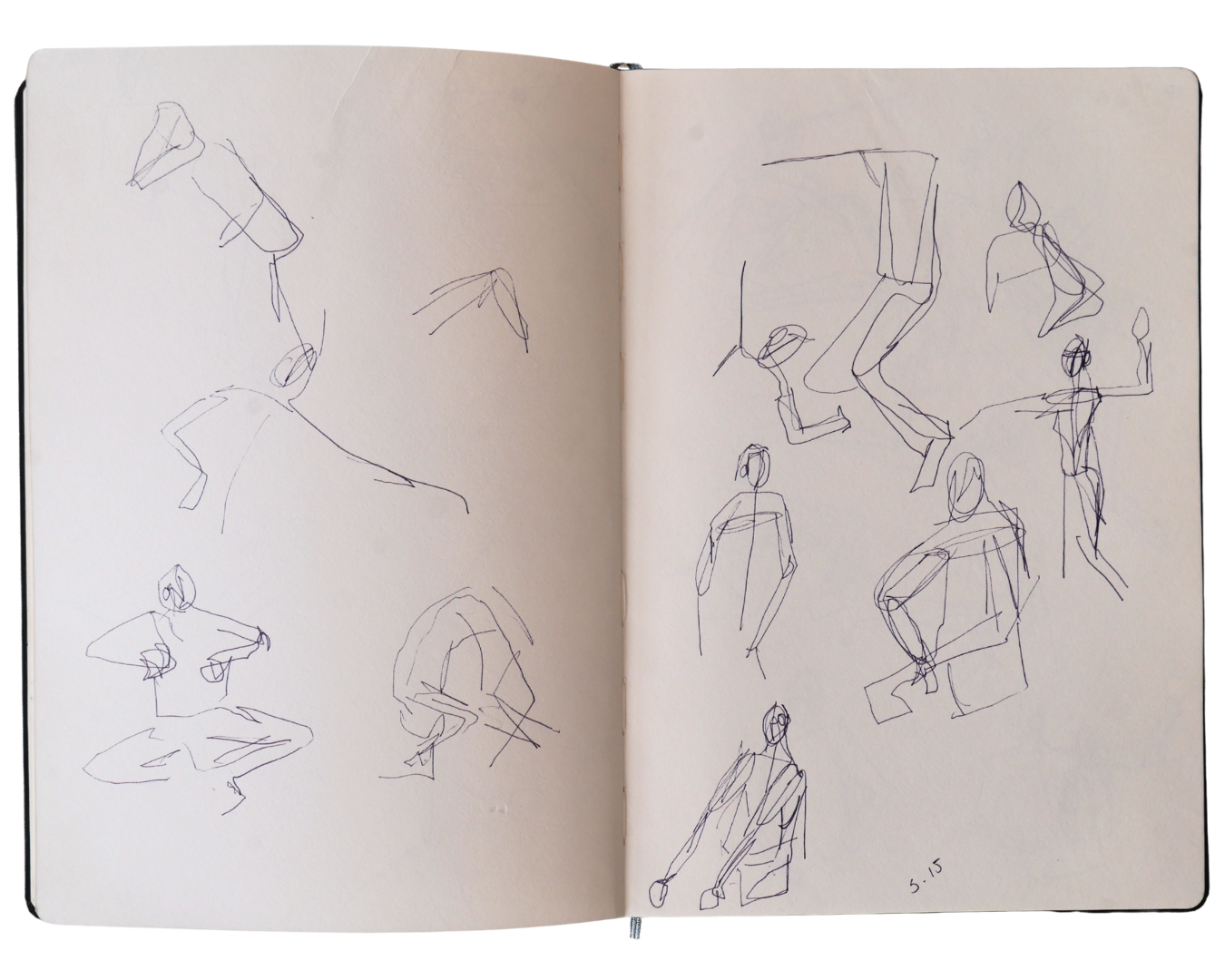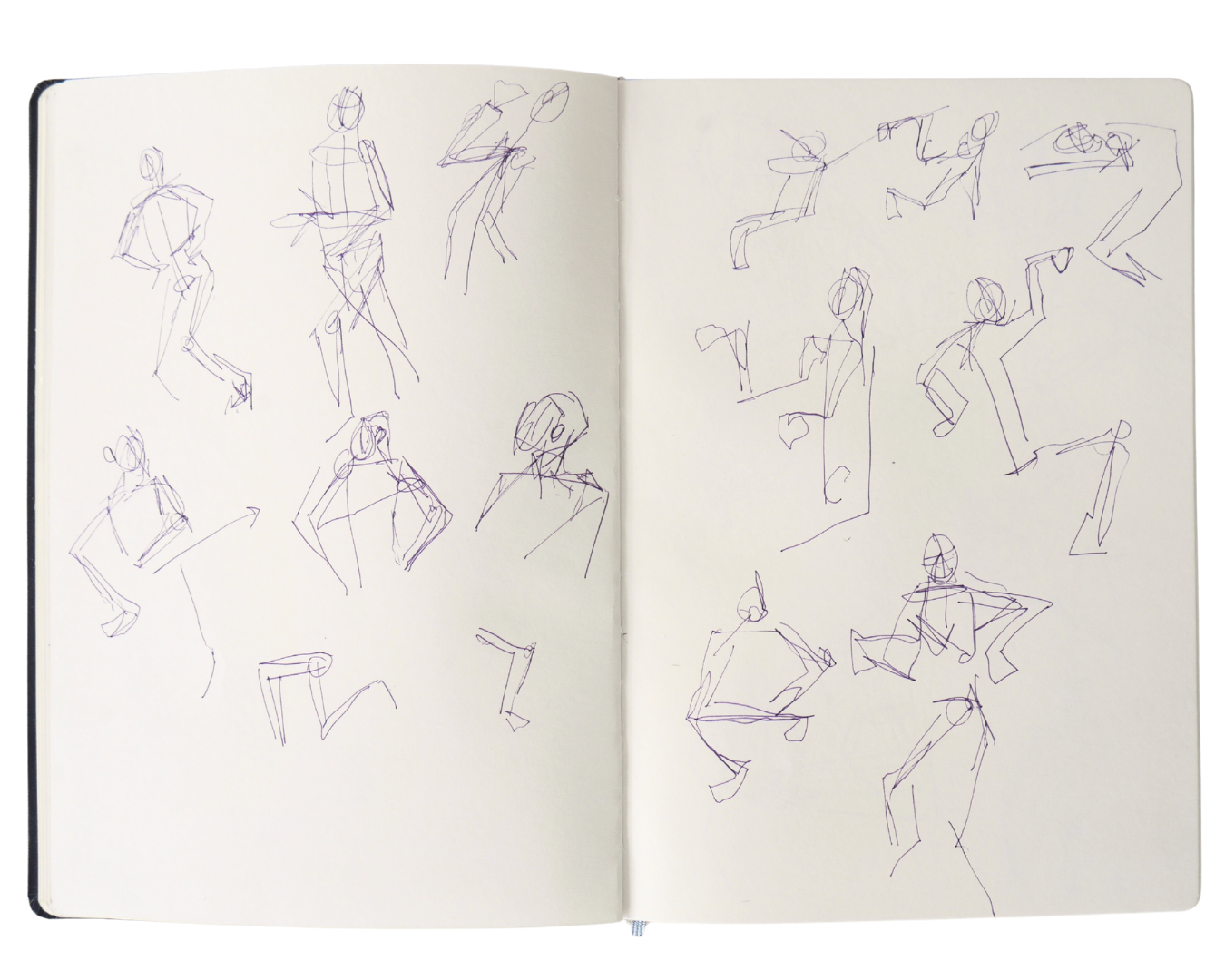 Visiting more places across the country, I drew inspiration from the landscape, culture, food, and customs. Exploring further afield from Bangkok ended up being just as fulfilling as the research project for me to get a better idea of how these elements of dance, theatre and ceremony are visible throughout Thailand. I enjoyed observing traditional Thai massage, something usually only conducted in private spaces, being a communal experience along the coast and in shared rooms. You can see glimpses of my thoughts through my travel sketchbook below.