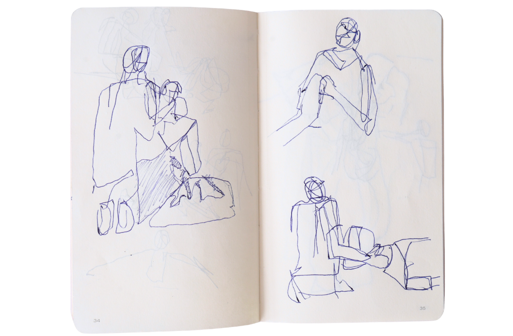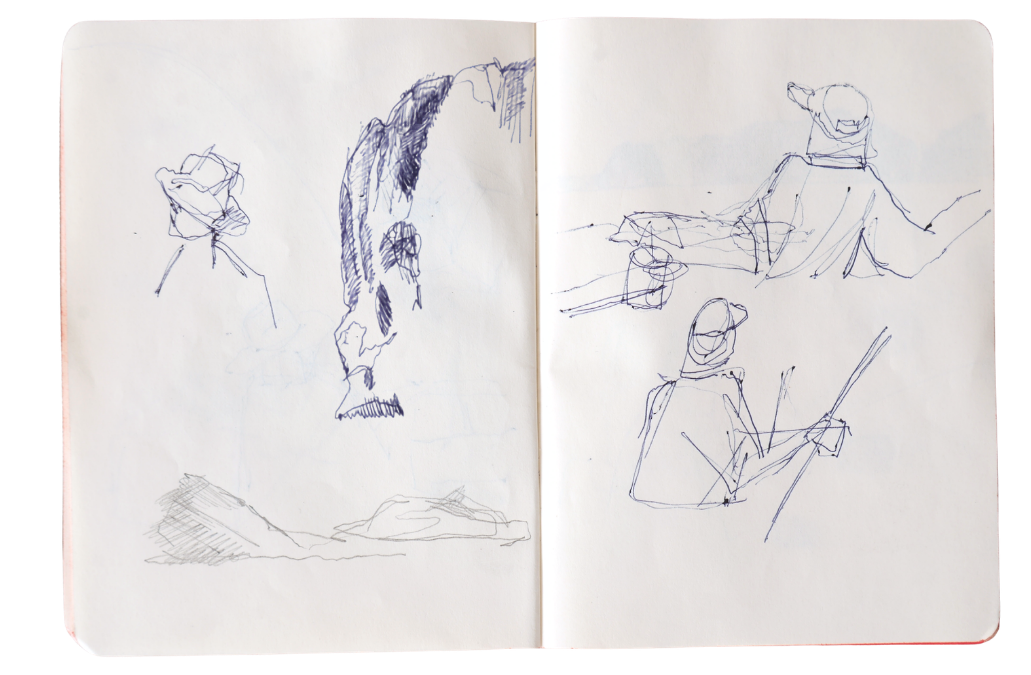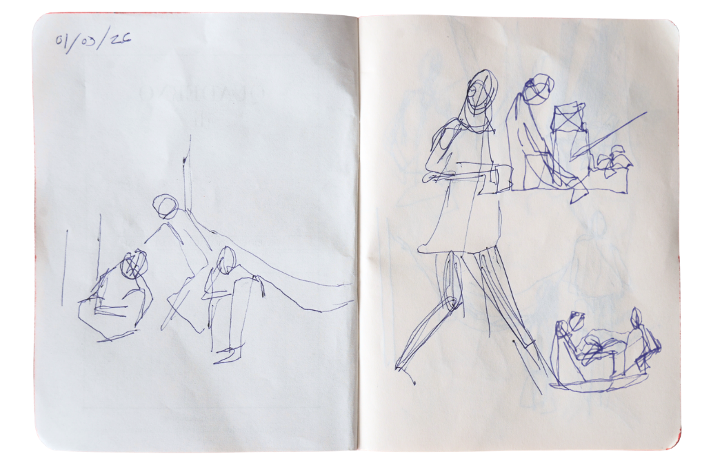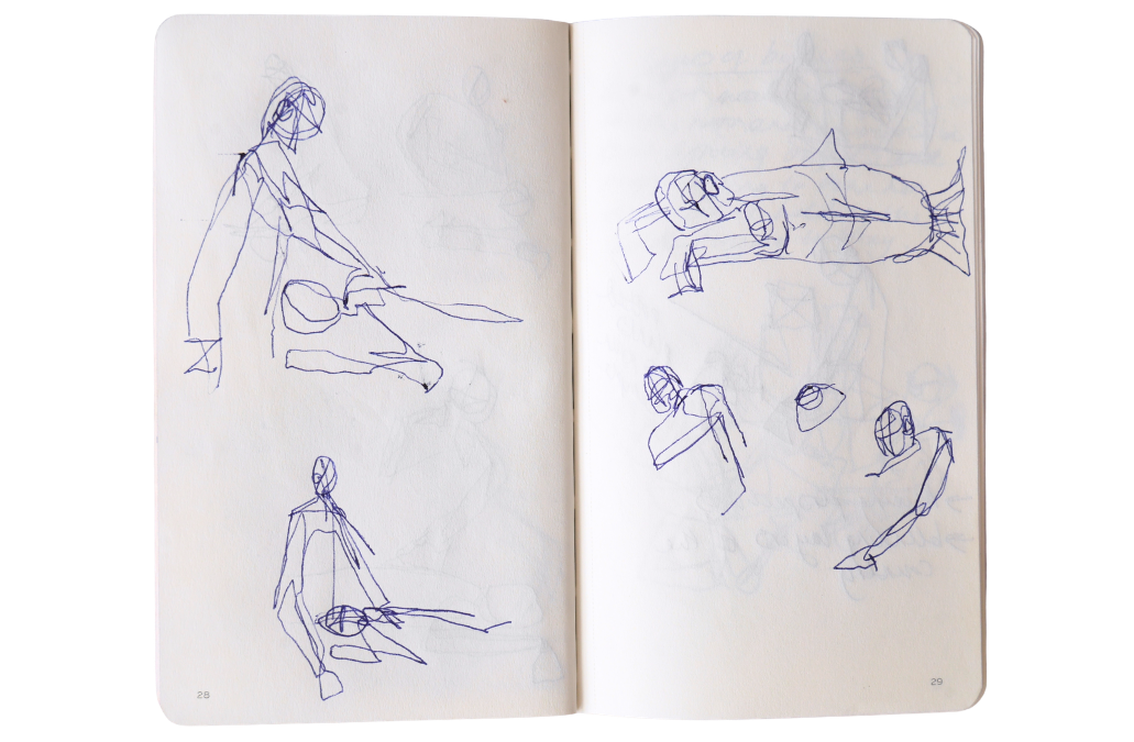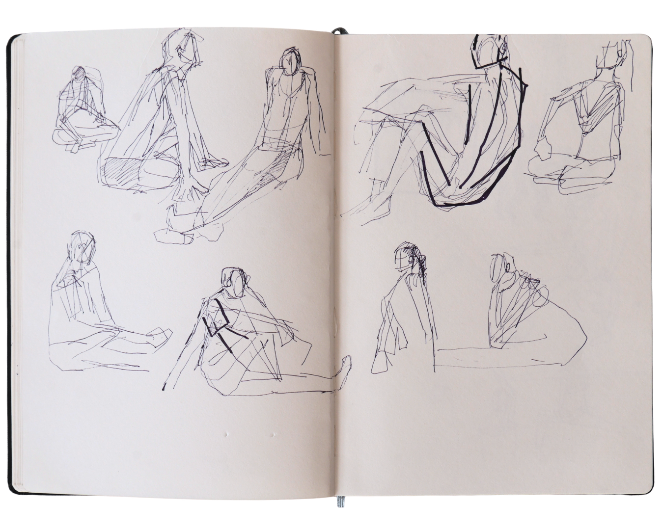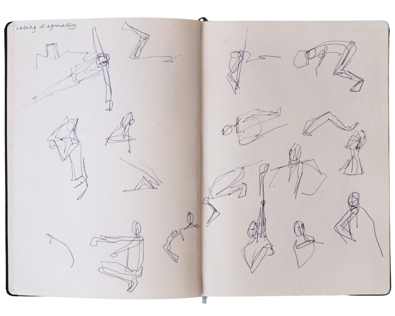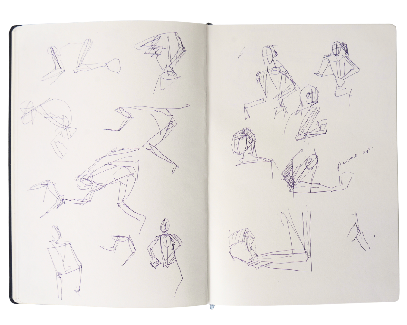Visiting more places across the country, I drew inspiration from the landscape, culture, food, and customs. Exploring further afield from Bangkok ended up being just as fulfilling as the research project for me to get a better idea of how these elements of dance, theatre and ceremony are visible throughout Thailand. I enjoyed observing traditional Thai massage, something usually only conducted in private spaces, being a communal experience along the coast and in shared rooms. You can see glimpses of my thoughts through my travel sketchbook below.