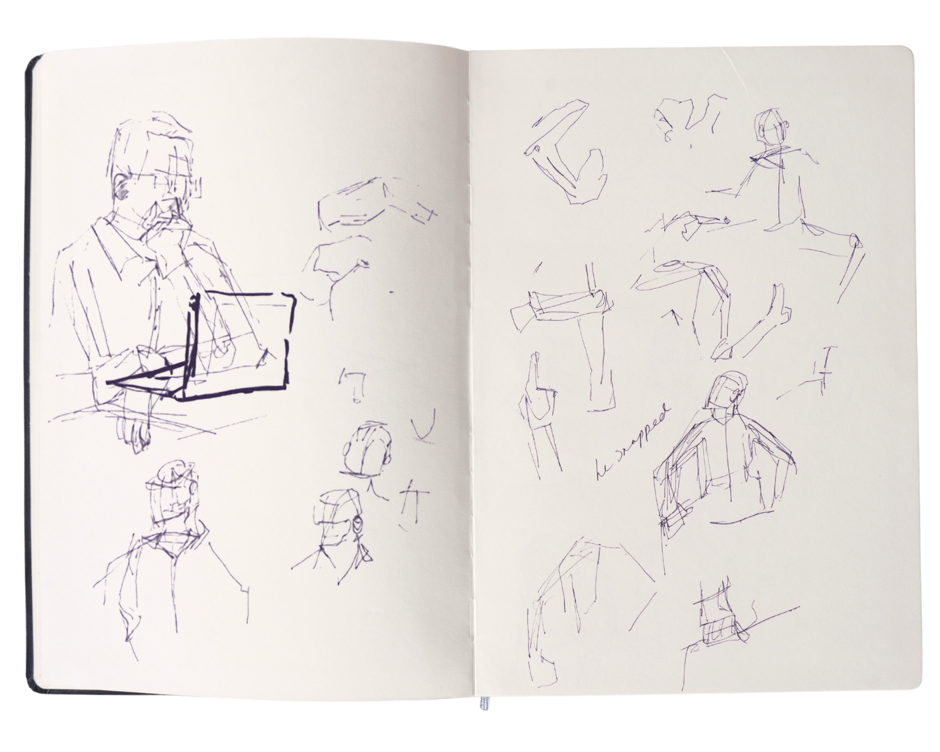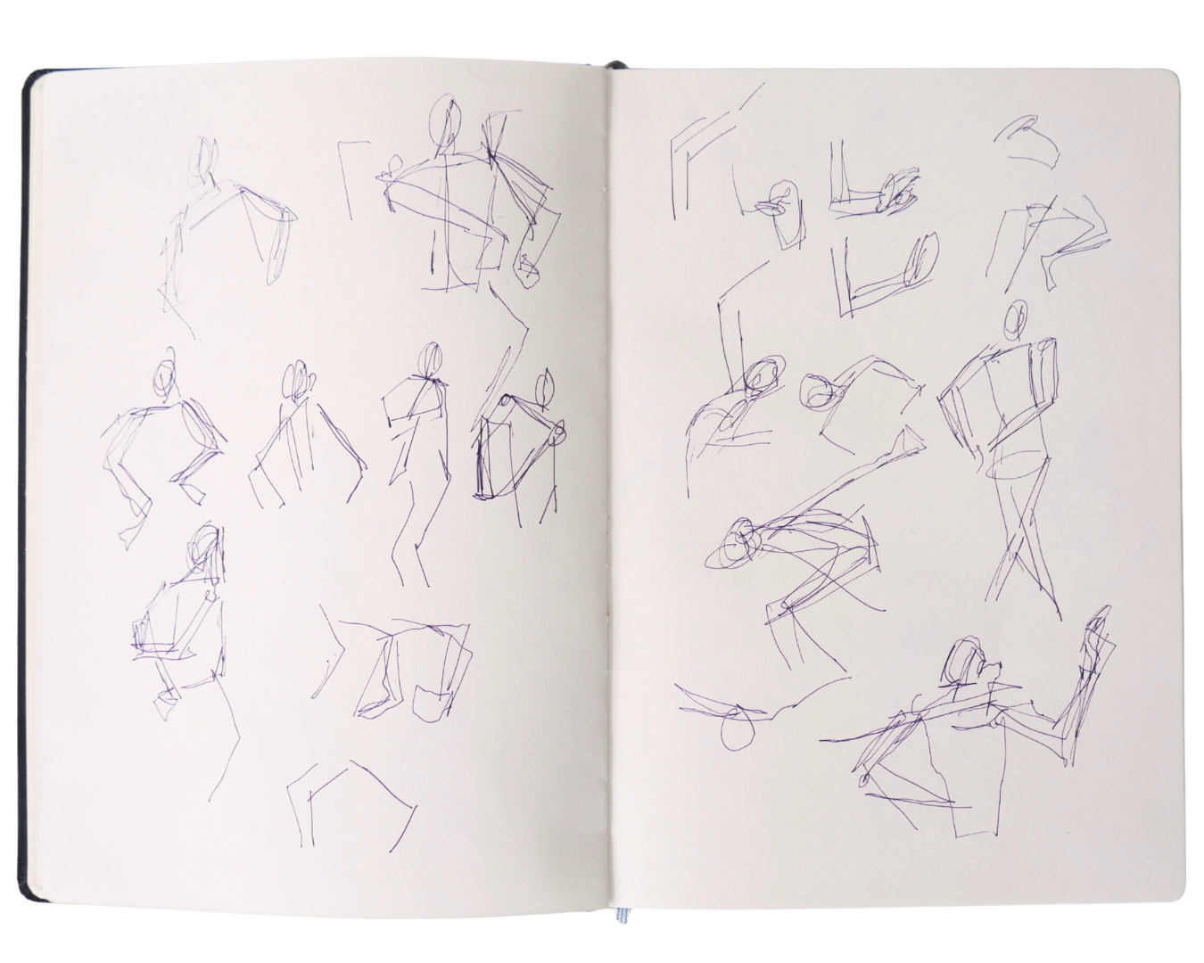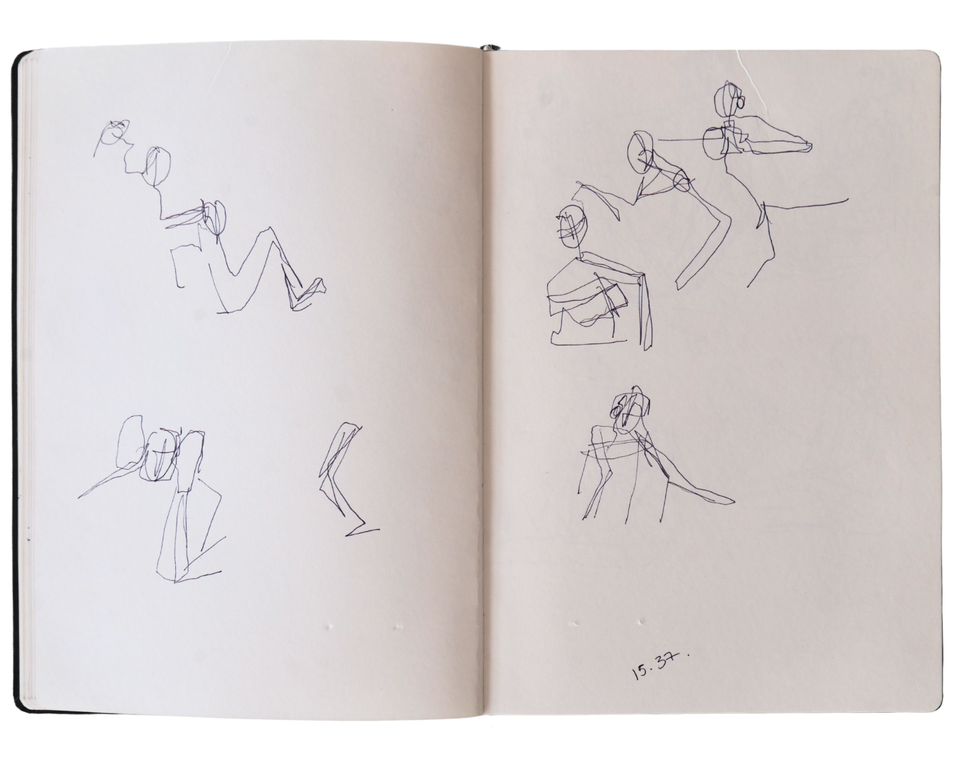 During my time in Bangkok, I was able to watch a variety of performances by the company and discuss some of the themes of their work. performances took place in Bangkok Kunstalle, a modern art centre in Bangkok’s Chinatown. The last session was held at the change theatre, PKDC’s official home and rehearsal space, where they were putting the final touches on a revised production. You can see drawings from all three sessions below.