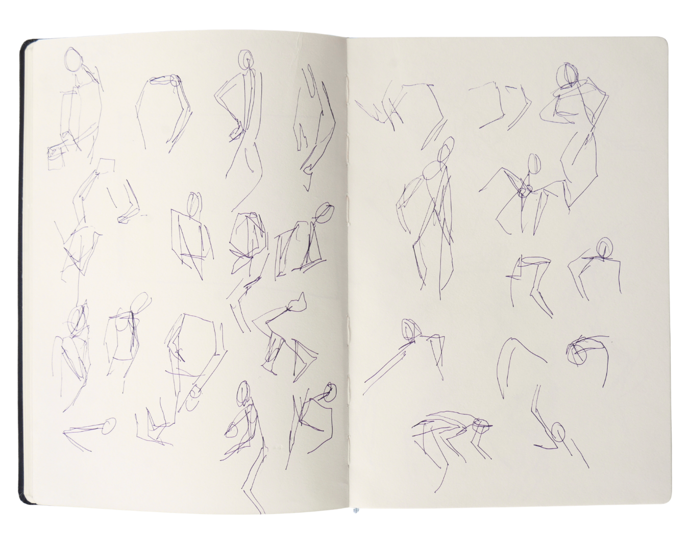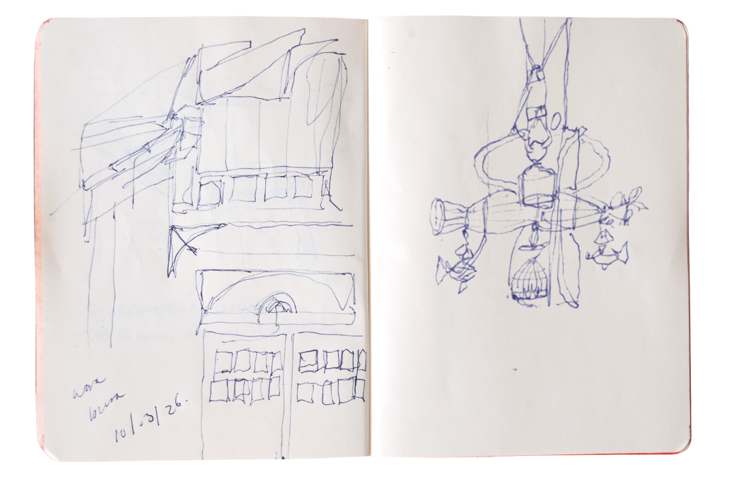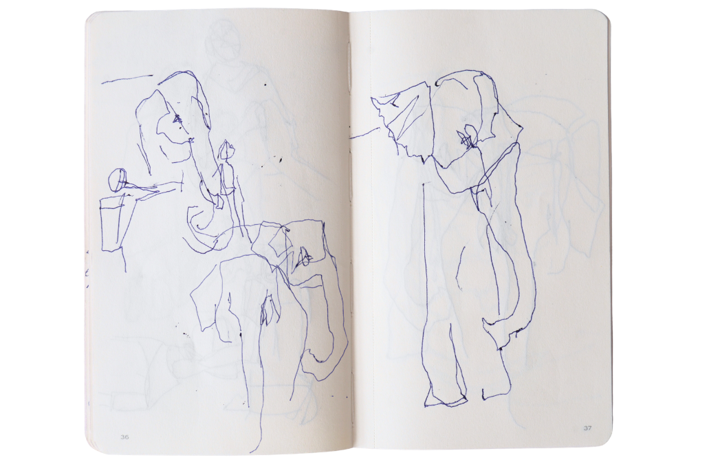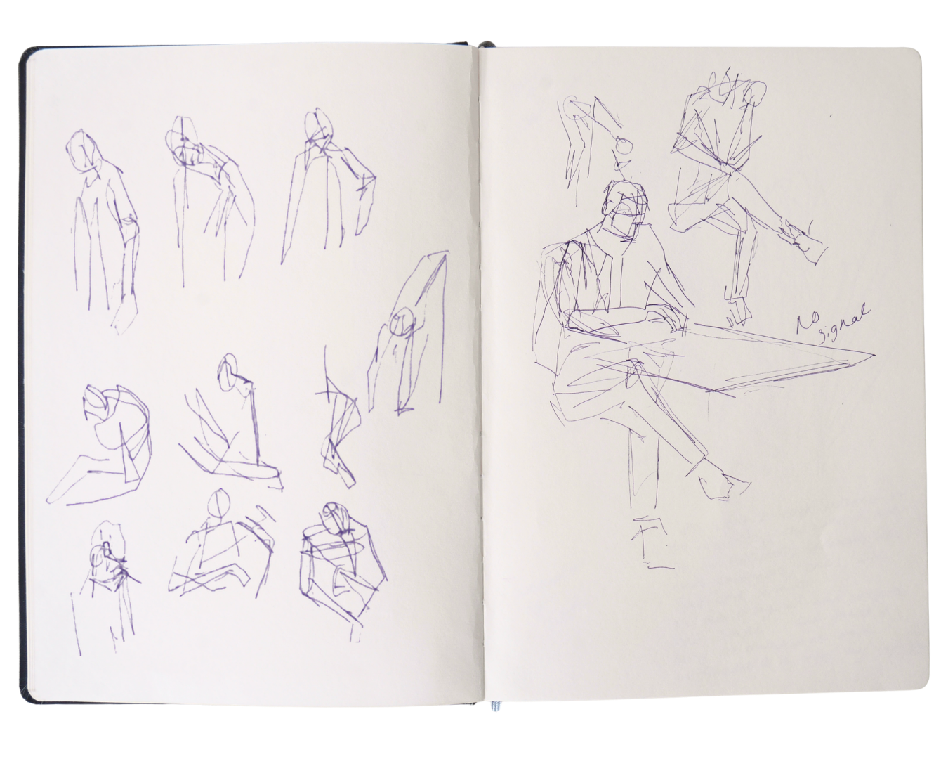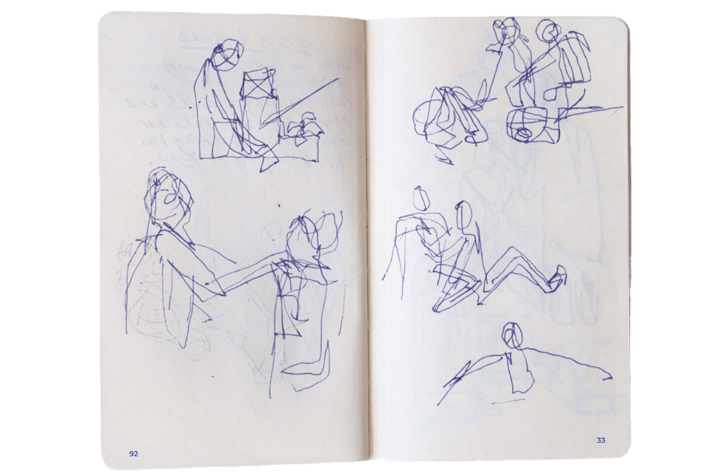 During my time in Bangkok, I was able to watch a variety of performances by the company and discuss some of the themes of their work. performances took place in Bangkok Kunstalle, a modern art centre in Bangkok’s Chinatown. The last session was held at the change theatre, PKDC’s official home and rehearsal space, where they were putting the final touches on a revised production. You can see drawings from all three sessions below.