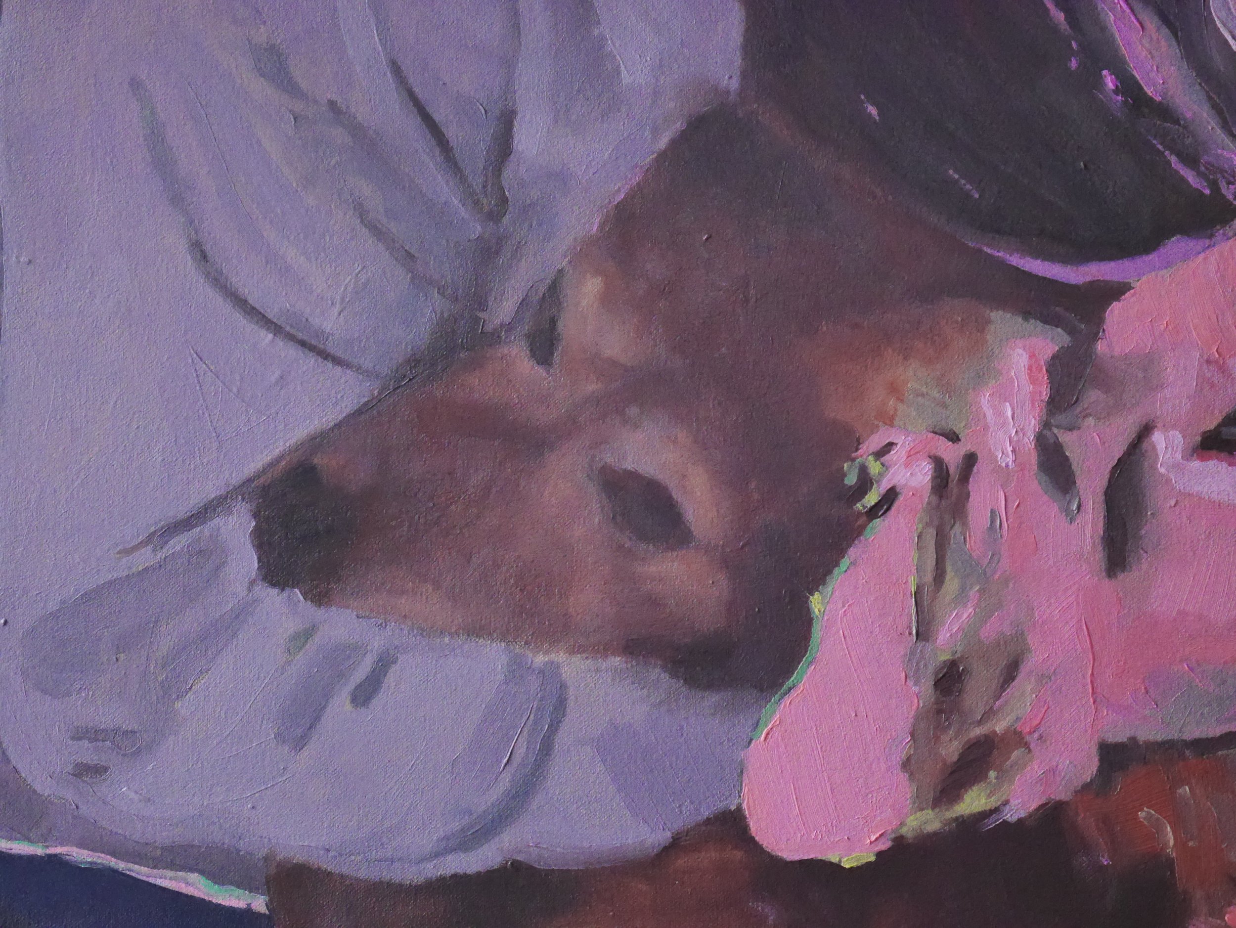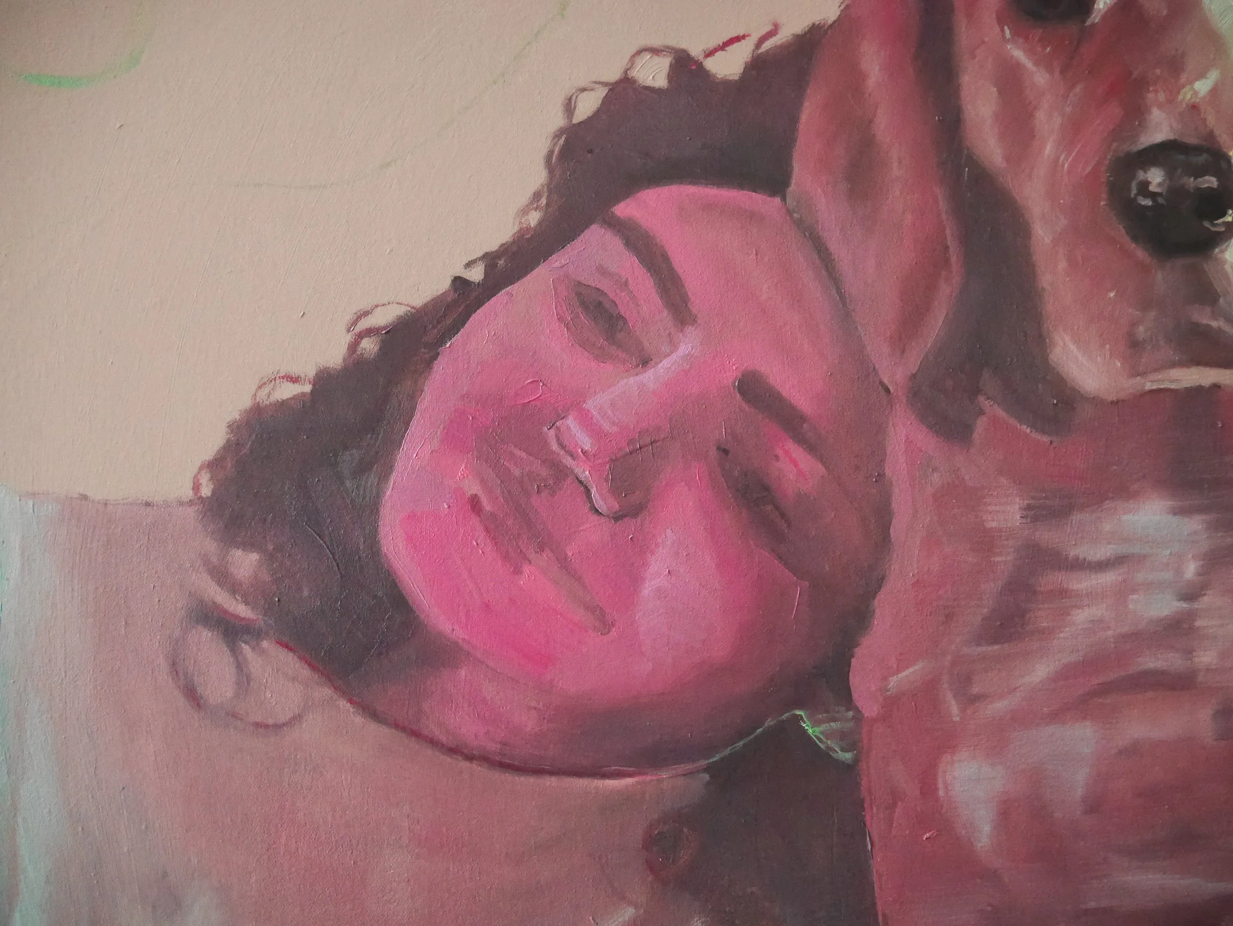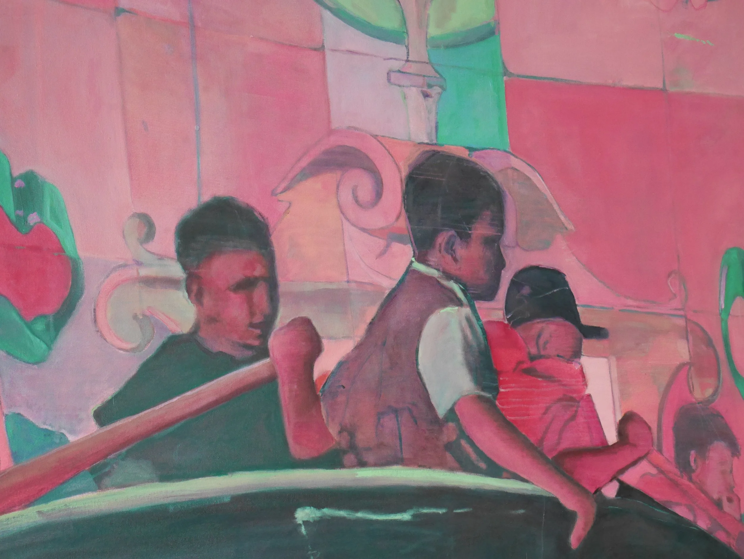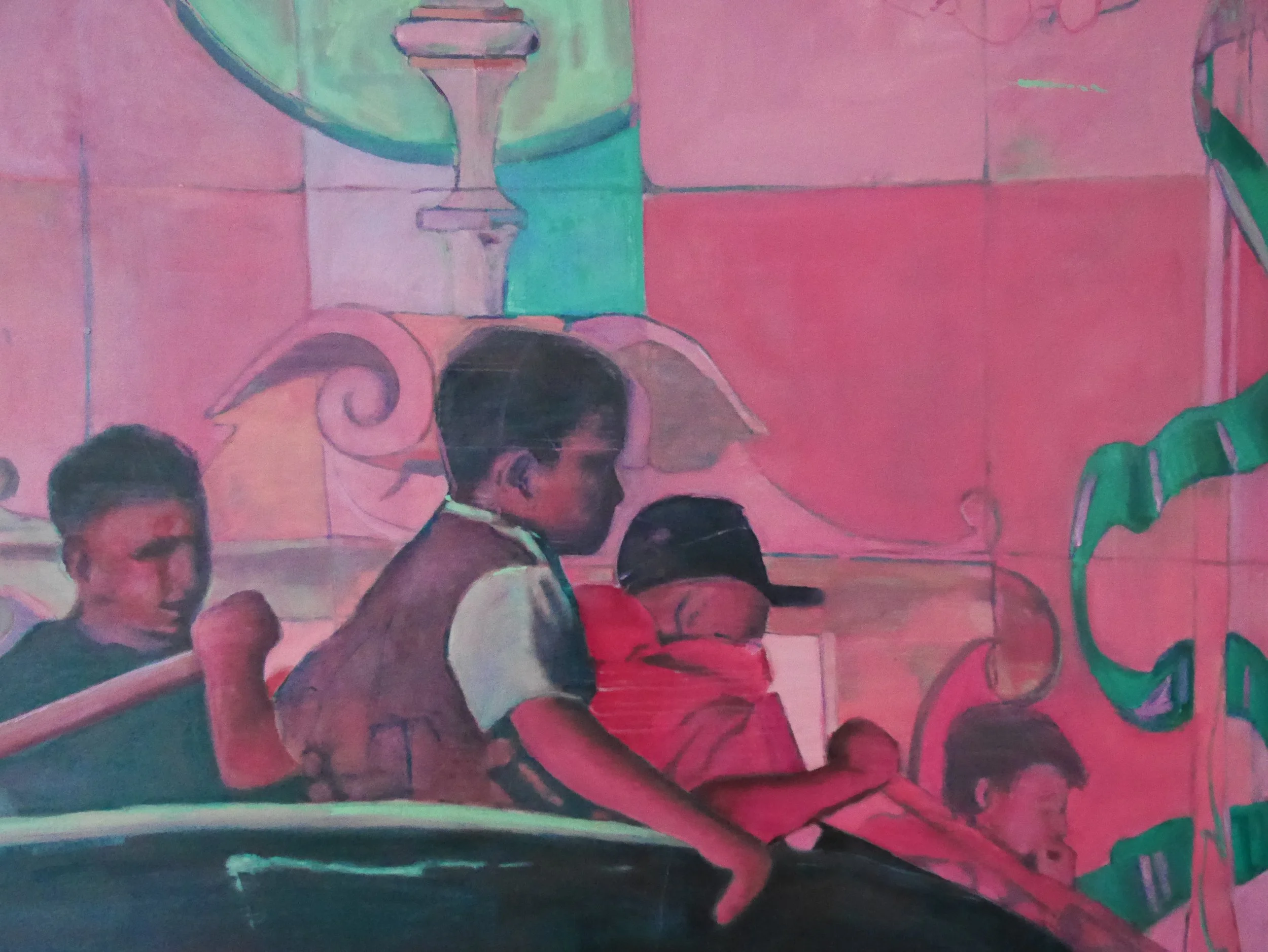 ‘Mish’ is the subject of this painting, a prominent circus performer in Belfast, performing a piece called ‘On Tish’ in our old studio carpark.