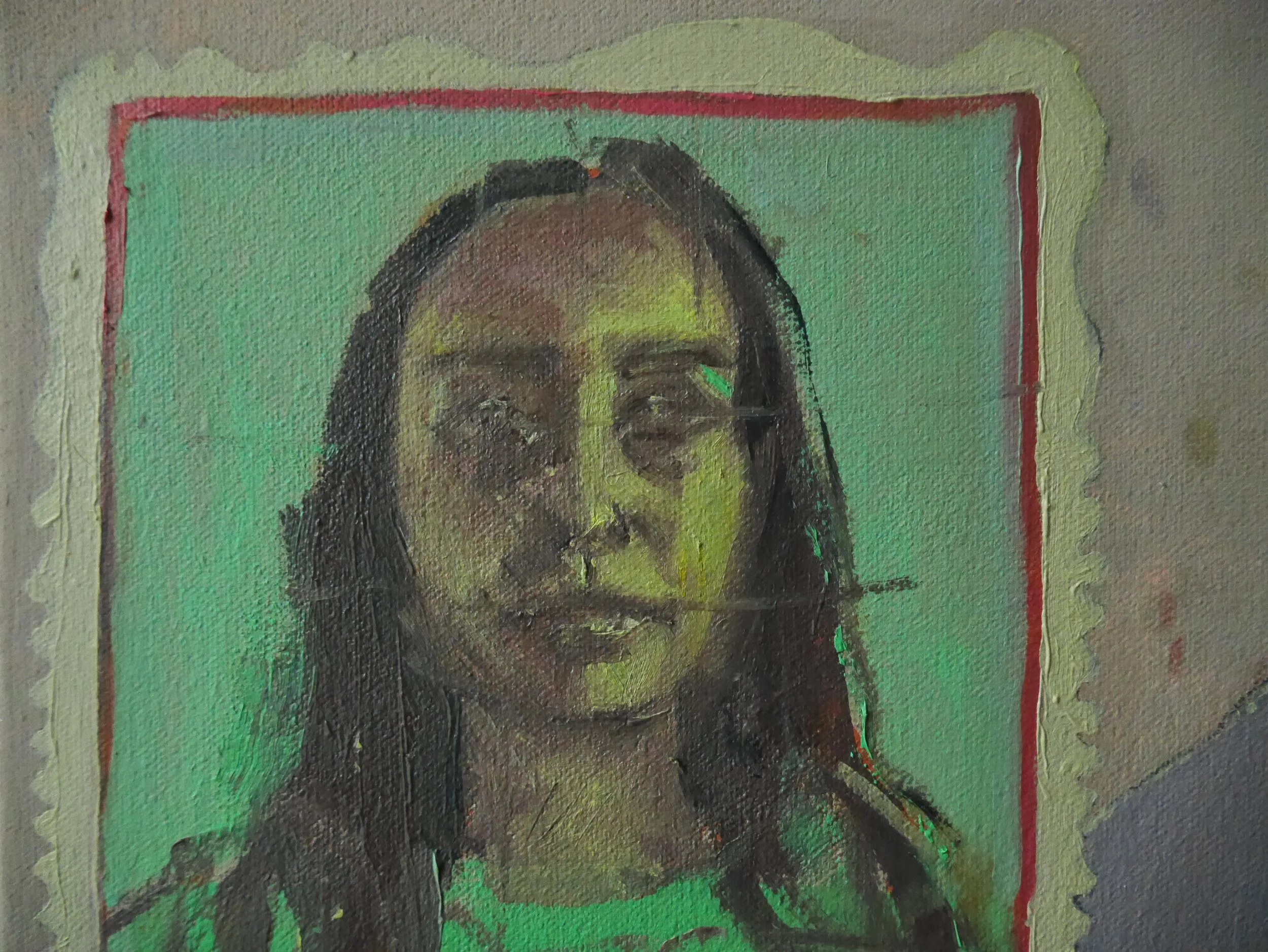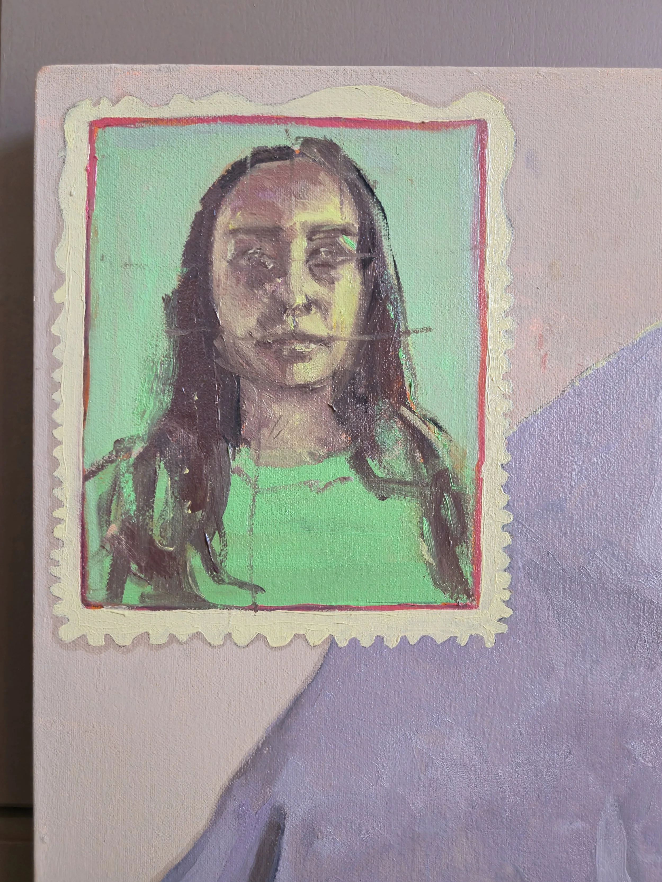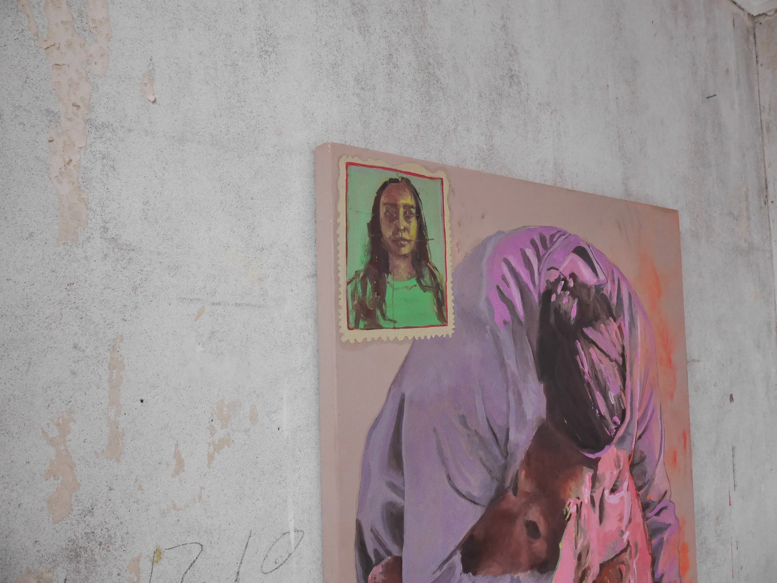 Created from images I collected Glastonbury festival in 2022. This painting portrays an imagined mother and a daughter camouflaged into their surroundings.